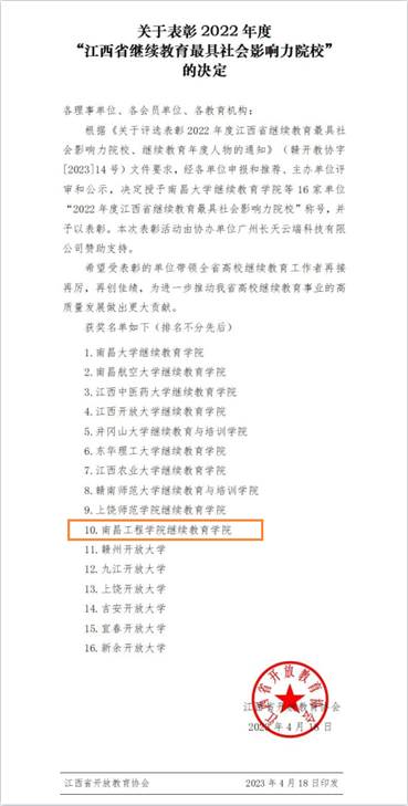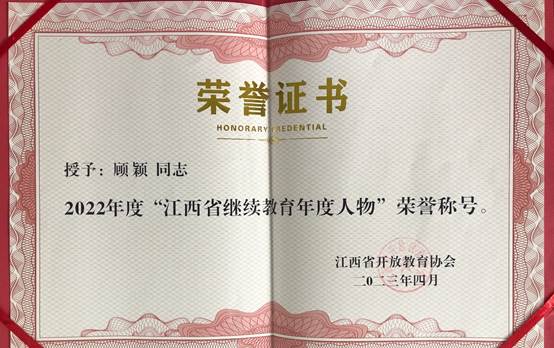 4月20日,2023年江西省高校继续教育大会暨第五届继续教育学术年会在南昌举行。公司荣获2022年度“江西省继续教育最具社会影响力院校”荣誉称号,PA视讯集团官方网站顾颖获得2022年度“江西省继续教育年度人物”称号。(文、图/顾颖)